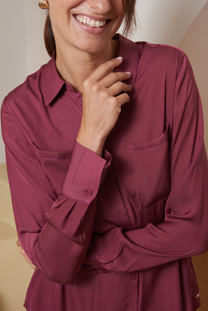 Chemise Esra Femme Cassis – Élégance Minimaliste & Fluidité Moderne