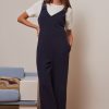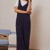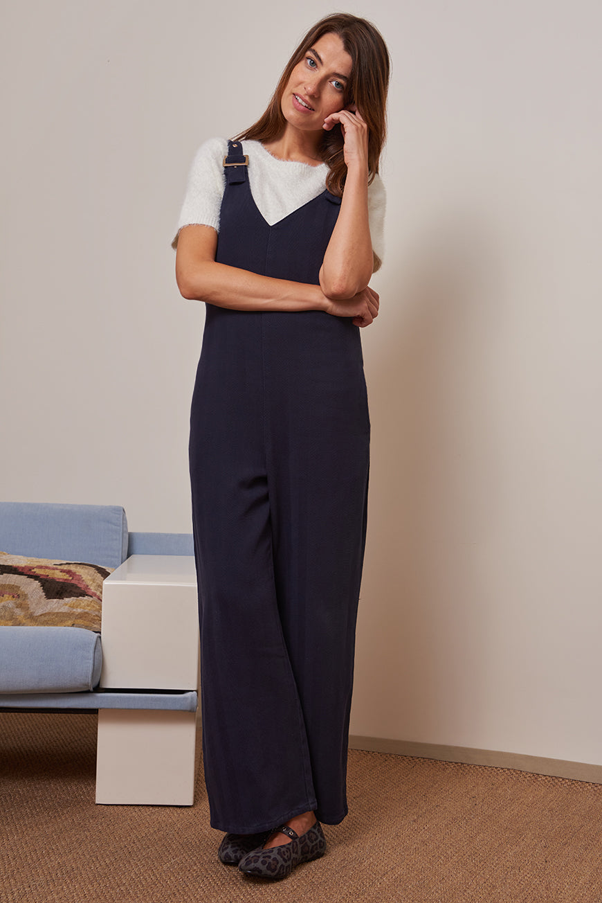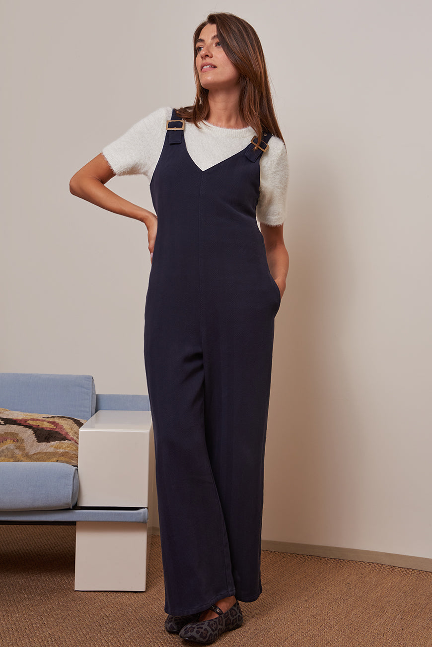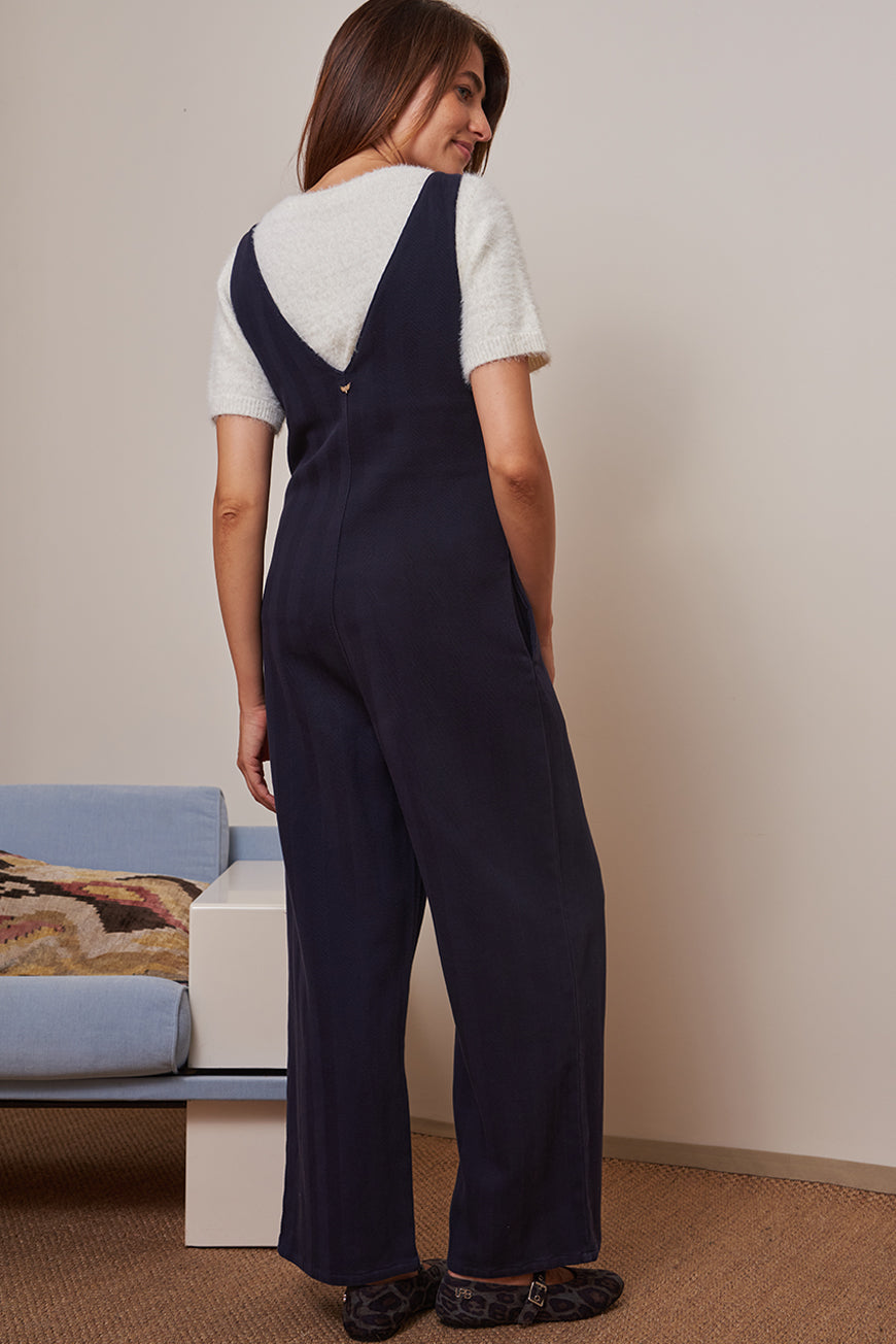Combinaison Marine ample avec bretelles réglables Myliana – Élégance Graphique & Silhouette Allongée