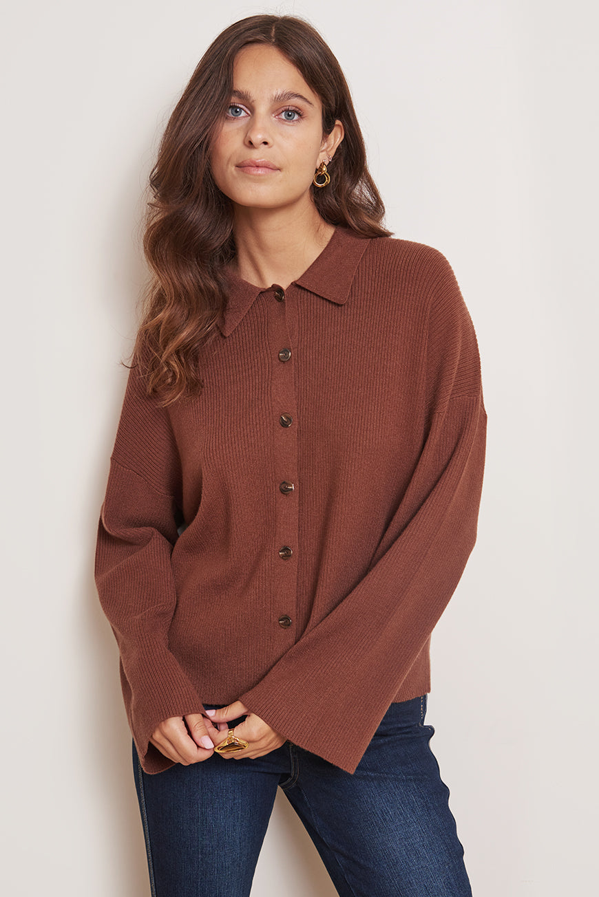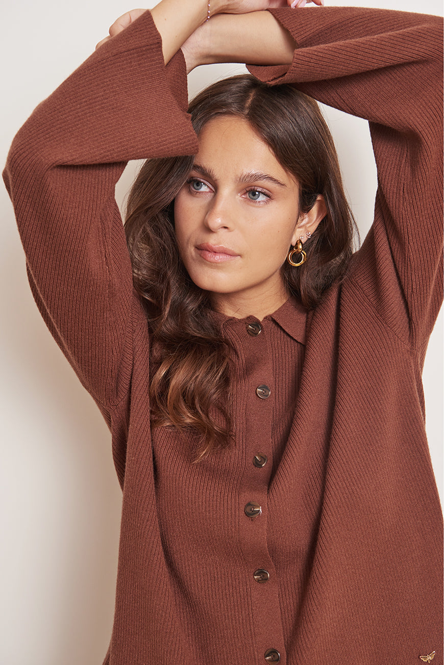 Les Petites Bombes Femme Men’s Gilet Col Chemise Melia | Choco