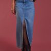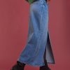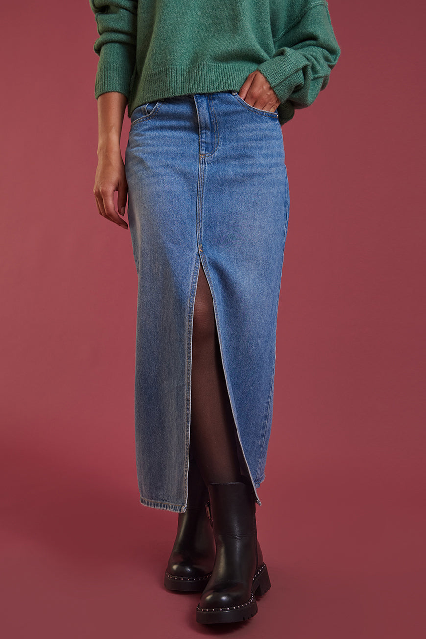 Jupe en jean used Mattia Femme – Jupe Longue denim & fendue & Imprimé Raffiné