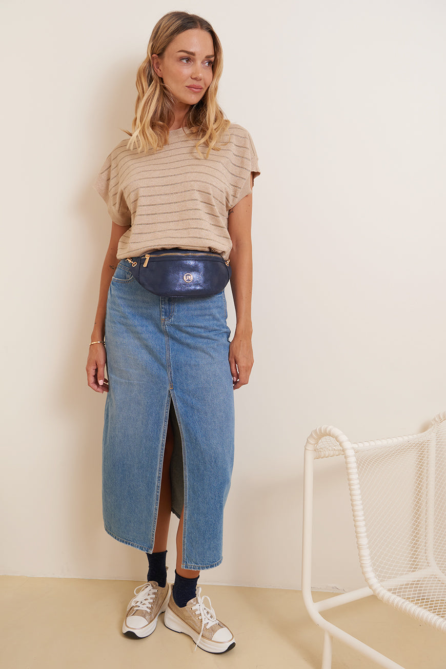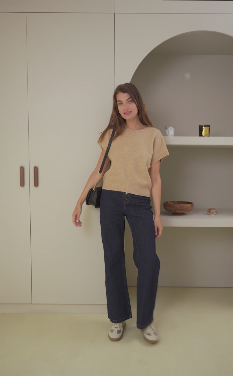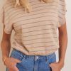 T-shirt sable rayures femme à mancherons Jelila – Élégance minimaliste et confort chi